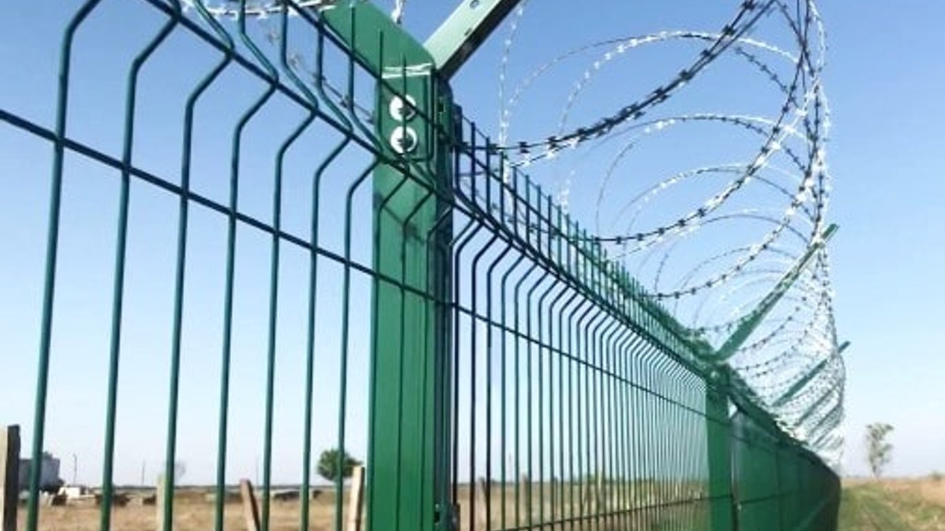 перший, другий та четвертий з металевої решітки заввишки 2 метри з колючим дротом зверху;