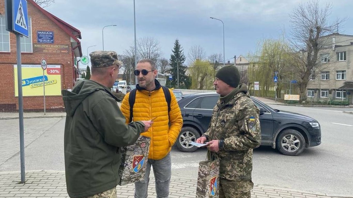 Працівники ТЦК перевіряють документи чоловіка. Ілюстративне фото: Львівський ОТЦК